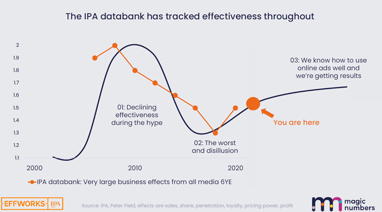 This trend was perfectly mapped by Dr Grace Kite in her recent Cannes talk about the 3rd age of effectiveness, highlighting the corresponding decline in effectiveness with the rise of digital.